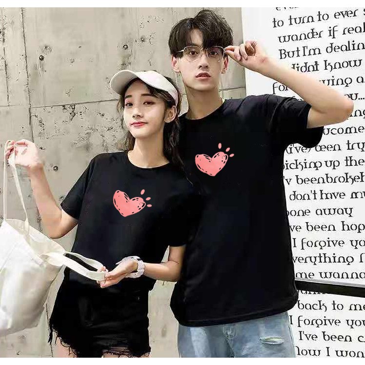 Baju Couple Pria Dan Wanita Polos Motif Love Warna Pink Serasi Loph Shopee Indonesia
