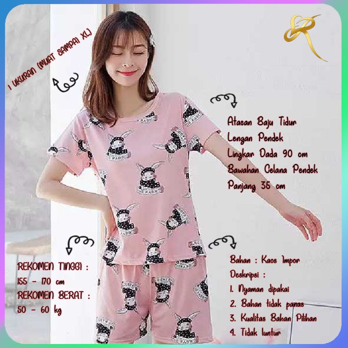Baju Tidur Piyama Celana Pendek Wanita Dewasa Kaos Impor Rabbit Shopee Indonesia